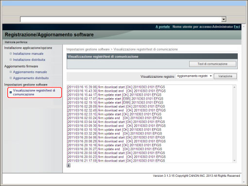 Premere [Impostazioni gestione software] → [Selezione visualizzazione registro] → [Visualizzaz. registri aggiornam.].