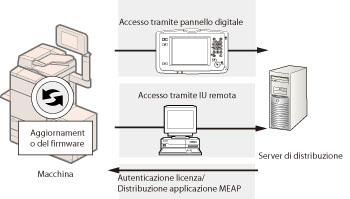 È possibile aggiornare il firmware della macchina alla versione più recente utilizzando la funzione "Registrazione/Aggiornamento software". Questa funzione può essere utilizzata sia dal pannello digitale sia dal computer (IU remota).