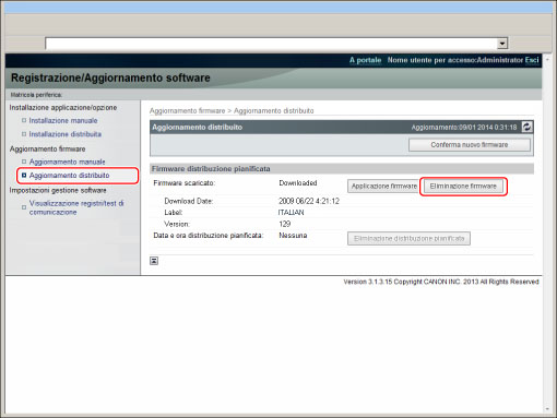 Il firmware scaricato con Aggiornamento pianificato può anche essere eliminato.