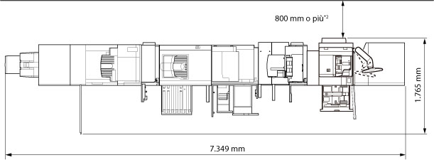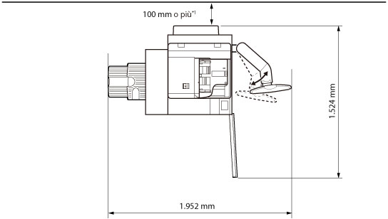 *1 Verificare di disporre di almeno 800 mm di spazio se si installa una o più delle seguenti periferiche: Paper Folding Unit-F1, Professional Puncher-B1, Document Insertion Unit-M1, Multi-drawer Paper Deck-B1, Perfect Binder-D1 o High Capacity Stacker-G1.