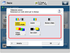 Se [Utilizzo Colore] in [Selezione impostazioni colore per copia] è impostato su 'Off', [Colore] non viene visualizzato. (Vedere "Limitazione dell'utilizzo colore".)