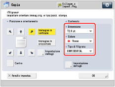 Se si imposta per due tra i modi [Numerazione pagine], [Numerazione serie] o [Stampa data] la stampa alla stessa posizione, viene visualizzato un messaggio che chiede conferma quando si preme