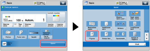 Inoltre è possibile selezionare il testo che è stato registrato in [Registr. caratteri per numer. pagine/filigrana].(Vedere "Registrazione/modifica/eliminazione di un testo definito dall'utente per i numeri di pagina e le filigrane".)