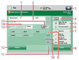Premere questo tasto per impostare utili funzioni fax quali ad esempio l'invio contemporaneo di originali di diverso formato o l'invio di originali fronte-retro.