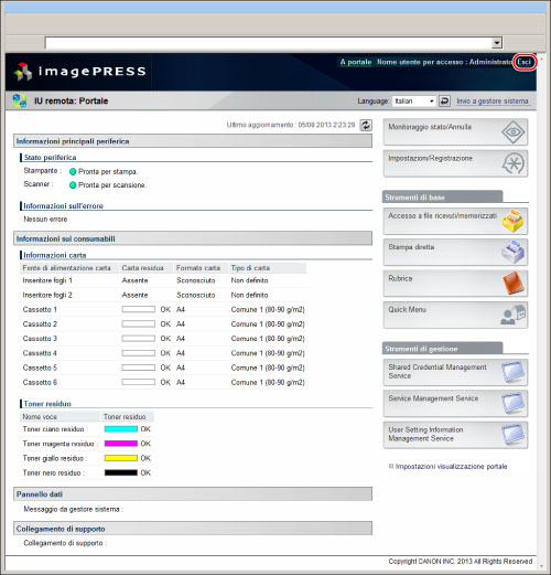 Per informazioni sui requisiti di sistema per l'IU remota e le operazioni preliminari necessarie per avviarla, vedere "Requisiti di sistema" e "Prima di utilizzare l'IU remota".