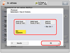Se sono selezionati più intervalli di pagine e le impostazioni di ciascun intervallo sono diverse, viene visualizzato [Misti] per [Formato carta per stampa] e [Ogni sezione] o [Applic. impostaz. per ogni sezione] per le altre impostazioni.