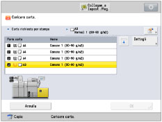 Se mentre è in corso la stampa viene visualizzato un messaggio che chiede di caricare la carta, la stampa si interrompe e riprende solo dopo che è stata inserita della carta del tipo corretto. Se si seleziona una fonte di alimentazione diversa, le stampe rimanenti verranno effettuate dopo aver premuto [OK].
