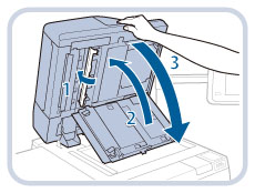 1.Tirare la leva sopra l'alimentatore e aprire il pannello di scansione dei documenti. |