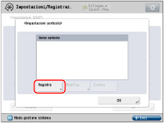 Viene registrato per impostazione predefinita un contesto denominato 'NULL'. Il contesto 'NULL' non può essere cancellato e non viene visualizzato nella schermata Impostazioni contesto.