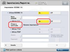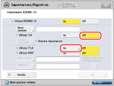 Se si imposta <Utilizzo TLS> su 'On', non è possibile impostare <Utilizzo TTLS> o <Utilizzo PEAP>.