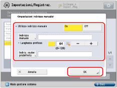 Se <Utilizzo DHCPv6> è stato impostato su 'On' al punto 7, l'indirizzo IPv6 di un server DNS impostato manualmente viene sovrascritto.