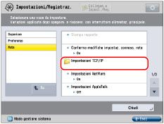 Premere [Su] → [Su] → [Impostazioni TCP/IP].