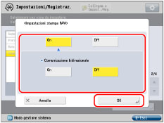 Per impostare la comunicazione bidirezionale, premere [On] per <Comunicazione bidirezionale>.