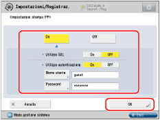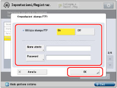 Premere [On] per <Utilizzo stampa FTP> per utilizzare FTP come applicazione di stampa.