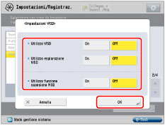 <Utilizzo esplorazione WSD> viene impostato automaticamente su 'On' se si seleziona [On] per <Utilizzo WSD>. È quindi possibile ottenere le informazioni sulla macchina utilizzando WSD.
