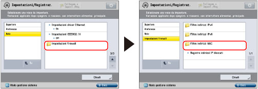 Premere [Filtro in uscita] o [Filtro in ingresso] per [Filtro indirizzi MAC] → [Off] per <Utilizzo filtro>.