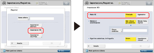 Premere [Impostazioni manuali] per <Algoritmo autenticaz./crittografia> → impostare l'algoritmo per il metodo di autenticazione → premere [OK].