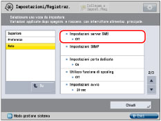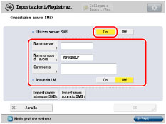 Premere [Off] per <Utilizzo server SMB> se non si desidera utilizzare il server SMB.