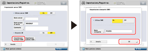 Premere [Impostazione stampan.SMB] → specificare le impostazioni della stampante SMB → premere [OK].