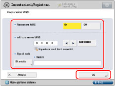 Premere [Impostazioni WINS] per [Impostazioni TCP/IP] → specificare le voci indicate di seguito → premere [OK].