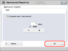 Utilizzare [-] o [+] per impostare il numero di copie desiderato.