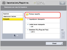 Il menu impostazioni rapporto è disponibile solo per la stampante PCL o PS.