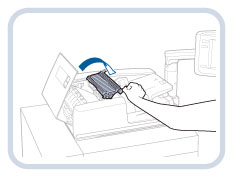 1. Tirare la leva e aprire il pannello dell'alimentatore.