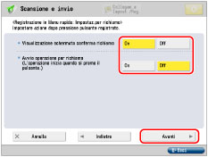 Per impostare la password nelle impostazioni memorizzate nel pulsante registrato, se si importano spesso impostazioni in un Pulsante personale o un Pulsante condiviso verso un'altra macchina e si desidera evitare l'utilizzo da parte di altri utenti, non includere una password durante la registrazione.