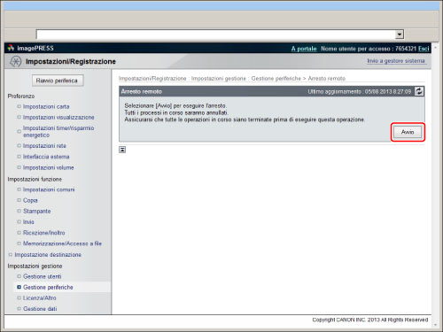 Lo spegnimento viene eseguito anche quando la macchina sta eseguendo un lavoro.