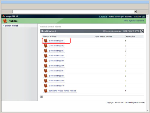 Fare clic su [Rubrica] → selezionare l'elenco indirizzi per modificare le impostazioni.