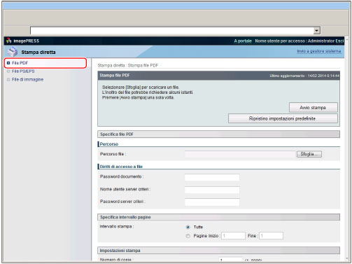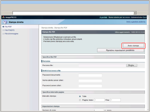 Se è installato l'imagePRESS Server, non è possibile utilizzare la funzione di stampa diretta.