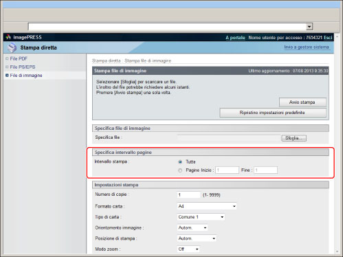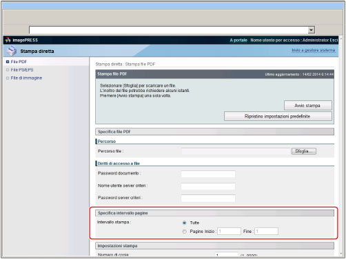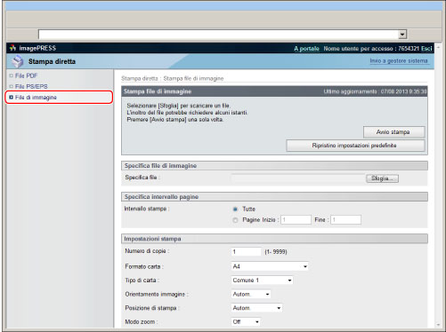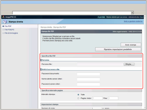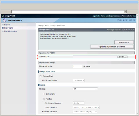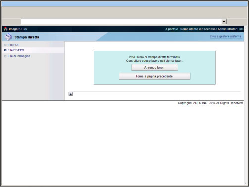 Per stampare i file PS/EPS direttamente dall'IU remota, è necessario imagePRESS Printer Kit.