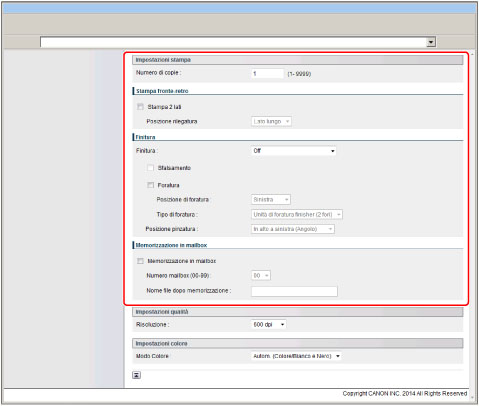 Per eseguire la stampa mediante la definizione di un URL, è necessario impostare [Utilizzo stampa rifer.] su 'On' in [IU remota] in [Impostazioni gestione] (Impostazioni/Registrazione).