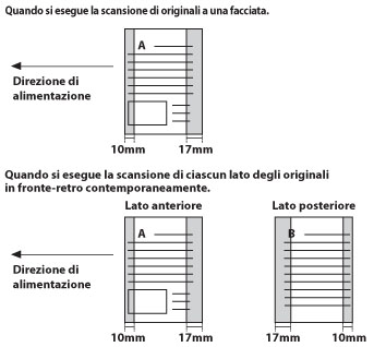 Se le aree a colori si trovano solo nel bordo indicato dallo schema seguente quando si caricano gli originali nell'alimentatore