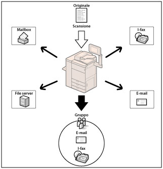 Per poter inviare i documenti acquisiti ad un indirizzo e-mail, ad un indirizzo I-fax oppure ad un file server, si devono configurare le impostazioni della rete. (Vedere "Impostazioni di comunicazione comuni per e-mail/I-Fax".)