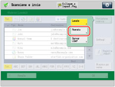 L'opzione [Variazione rubrica] viene visualizzata solo quando è registrata sia la Rubrica remota che il server LDAP. Se sulla macchina è registrata solo la Rubrica remota, viene visualizzato [A rubrica remota].