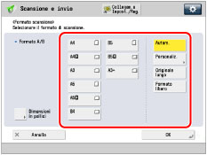 È possibile specificare manualmente un formato di scansione quando si acquisiscono originali che non possono essere rilevati con [Formato autom.]. Inoltre, è possibile memorizzare il formato di scansione specificato.