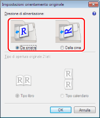 Per gli originali a due facciate, impostare [Tipo di apertura originale 2 lati] in modo da indicare la relazione tra il fronte e il retro.