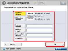 Selezionare [Informazioni contatto] → immettere le informazioni necessarie per contattare il gestore del sistema → selezionare [OK].