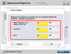 Se Gestione ID divisione è stata attivata tramite il Copy Card Reader-F1, non sarà possibile registrare/eliminare gli ID divisione.
