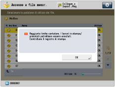 .Il limite al numero di pagine che possono essere generate può essere impostato tra 0 e 999.999 pagine. Una volta raggiunto il limite delle pagine, viene visualizzata la schermata seguente.