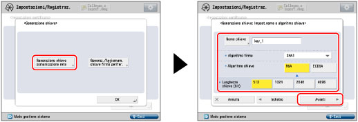 Dopo che è stato selezionato [Generaz. chiave], non è possibile utilizzare una chiave a meno che non sia stata generata e registrata una coppia di chiavi.