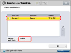 Selezionare il certificato CA da eliminare → premere [Elimina].