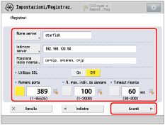 Premere [Impostazione destinazione] → [Registrazione server LDAP] → [Registra].