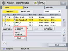 Sospende il lavoro attuale e stampa il lavoro selezionato.