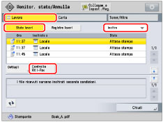 Se si preme [Lavoro] → [Registro lavori] → selezionare [Ricezione] dall'elenco a discesa, viene visualizzato anche [Controllo RX I-Fax].