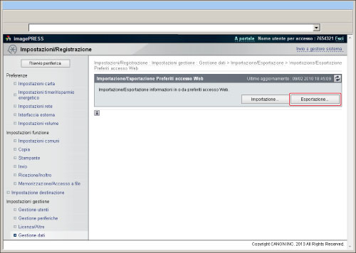 Fare clic su [Preferiti accesso Web] per <Importa/Esporta individualmente> → [Esportazione...].