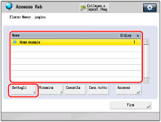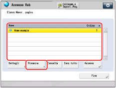 Selezionare [Nome] o [Ordine] per disporre l'elenco delle memorie di pagina in ordine ascendente o discendente.