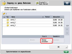 Wählen Sie den gewünschten Ordner → Berühren Sie die Taste [Details] → Bestätigen Sie durch Berühren der Taste [OK].