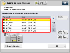 Wenn Sie [Details] drücken, werden detaillierte Informationen über das gewählte Papier angezeigt.